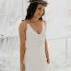 Featuring all-over French lace that hugs the body and flatters the female shape, the Lottie is an alluring dress that is easy and comfortable to wear. Beginning with a low V neckline and a daring scooped back, with hand cut Guipure lace motifs artfully placed on the thin spaghetti straps, the Lottie has been designed to compliment any shape.