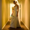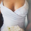 Custom made vintage 2008 Suzanne Harward gown in a light silver raw silk fabric.