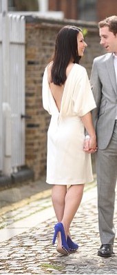Beautiful knee length silk dress - kimono sleeves, cowl neck, and backless in ivory silk. I loved wearing this well-tailored stylish and unique gown, from Rebecca Street for Browns Bride London.