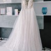 This dress does have to be seen to be believed; it is so unique. The bodice is sheer and underlined around chest, covered in applique, beading and sequins. I had bra cups built in, but of course these can be taken out if not suitable (I had these added in for uplift and shape, but as you can probably tell from images, the original dress shows the model without these). The skirt has 4 layers of slightly structured underskirt, baby pink tulle, sequinned tulle and ivory tulle to create an amazing sparkle and glow. The detailing of the bodice continues all the way around, making way for some unbelievable close up shots.