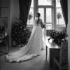 This is a beautifully classic silk and lace Phillipa Lepley dress bought from her boutique on Fulham Road for my London Christmas wedding in December 2018. It came with lots of thick petticoats which I had removed so it's light and comfortable to wear. It has a corset (a signature Philippa Lepley design) and fits snugly to the body. I had some small cups sewn into the bust to hold everything in place and the hem was altered at the front to fit my 5ft2 frame (I wore three inch heels on the day and the front of the dress met the floor) I also had a bustle fitted which folds the train neatly into 'bunny ears' at the back of the dress so you can dance the night away!