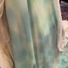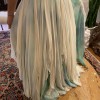 Custom, one-of-a-kind gown made by Barbara Kavchok. Cream silk bodice inspired by dress from another designer, light-weight chiffon skirt based on her ‘Miranda’ gown with custom painting. The color is a mixture of blue, teal, green, dark gold.