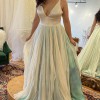 This dress was everything I dreamed of. In a world of white, this is a cream ivory and teal gem. I felt so bland and out of place in every white gown I tried on. In this, I felt liked myself. Corona messed with our plans and we spontaneously eloped. I wish I could wear this, but we have no plans at this point to have a reception. I hope this gown can bring joy another color loving bride!
