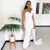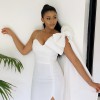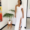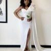 Incredibly flattering front slit custom made dress, this modern gown has a luxurious hand feel and a stylish bow atop the shoulder to give it a chic look. The dress comes with a detachable train that flows all the way from one side of the shoulder. Dress is made-to-measure and can come in any size. Specifications are allowed. Size in the picture is UK size 8