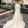Never worn discontinued Maggie Sottero Ivory Autumn size 2 petite dress. Beaded lace motifs cascade over tulle in this fit and flare wedding dress, accenting the illusion plunging sweetheart neckline and illusion scoop back. Lined with shape wear for a figure flattering fit. Finished with covered buttons over zipper closure.