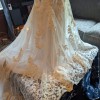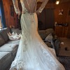 Brand New Dress, never used or altered. Sheer material on shoulders to give it a nude look. Beautiful train and lace