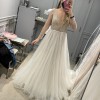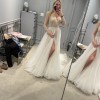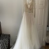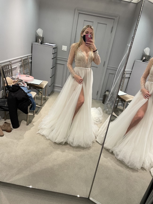 I bought this dress from Kleinfeld's in March 2022 for my August 2022 Wedding Celebration 2nd look. It is absolutely gorgeous and in the heat of the moment and all the energy from the sample sale, I purchased it as I fell in love. The dress is in amazing condition but I unfortunately have to sell because it's a size 10 and I am typically a size 0-2. I planned to keep but after bringing it to my seamstress, she explained it was too large and she would have to redo the back (loops, buttons), take out most of the beading, and pull the farbic in a lot. Because of this, I felt like the dress would lose it's integrity and gorgeous design and I'm listing instead for someone else to fall in love.