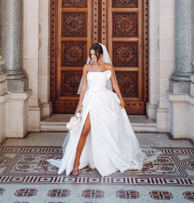 This is a custom made ISSY gown with a silk finish rather than the original organza finish (I personally preferred this as it looked a lot more elegant - especially in person). It is seriously the most comfortable wedding dress!! I generally wear a size 6-8. I had it dry cleaned straight after the wedding and it is in great condition. Please feel free to message me if you have any questions :)