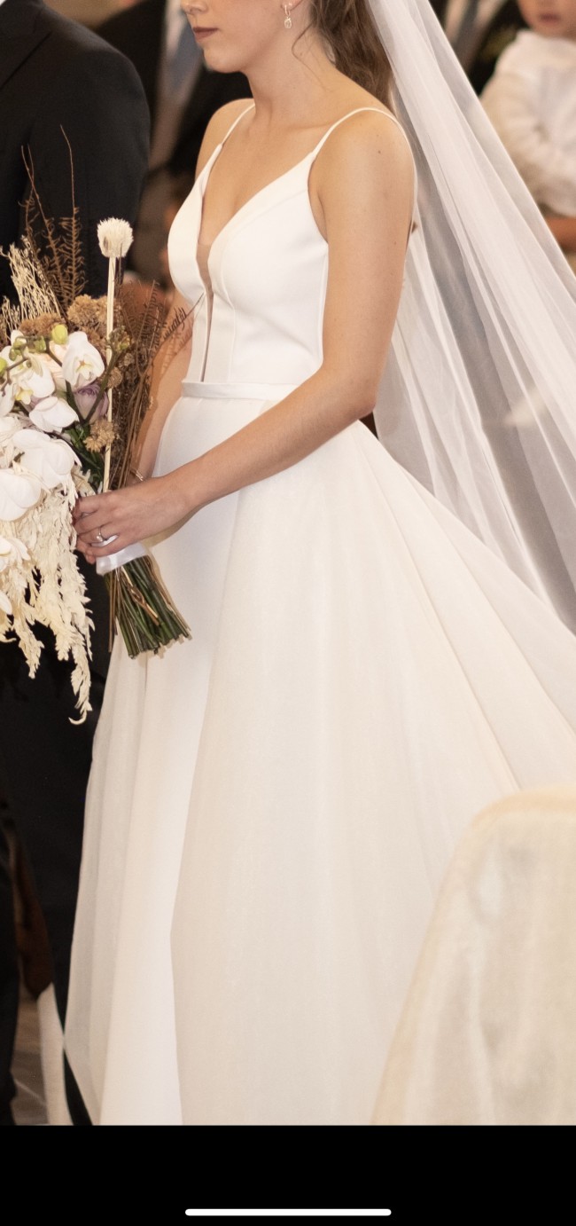 Wedding dress with an overskirt. Two dresses at a time. Belt included to use without the skirt. Very comfortable