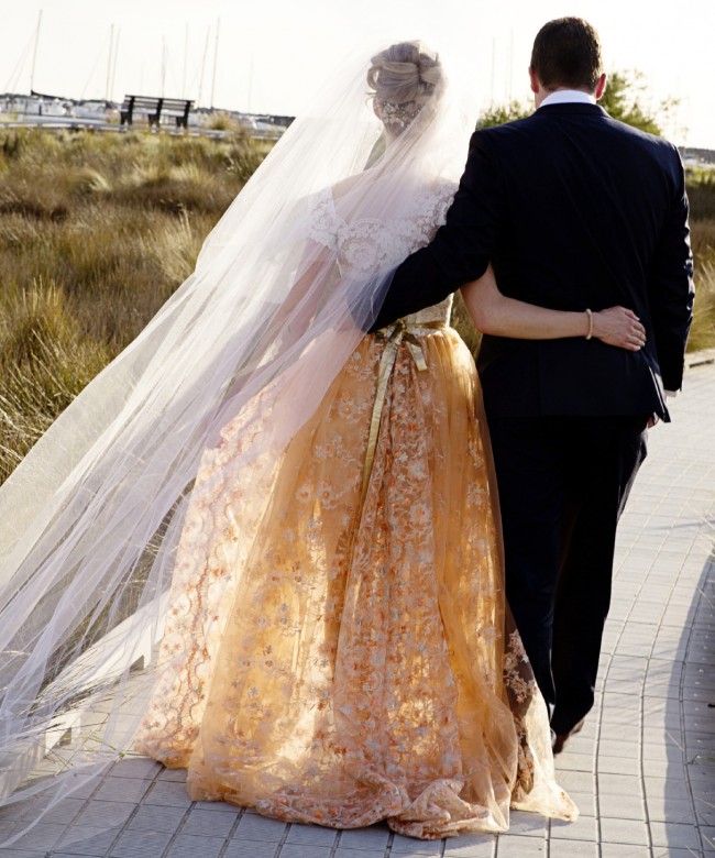 This special gown was worn on my wedding day only. The gown is in a very good condition, but has been worn for a day and can't be dry-cleaned according to the designer's instructions.
