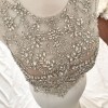 Brand new, gorgeous dress. I fell in love with these appliqués on the dress the second I saw it! It's sparkly and gorgeous, while looking expensive and unique. Such a gorgeous dress. Our wedding was canceled due to Covid and this dress is in brand new condition. Only tried on two times for a few minutes in the store. No alterations, will be perfect for your wedding day. I felt like a queen, and you will too. I am so happy for you!