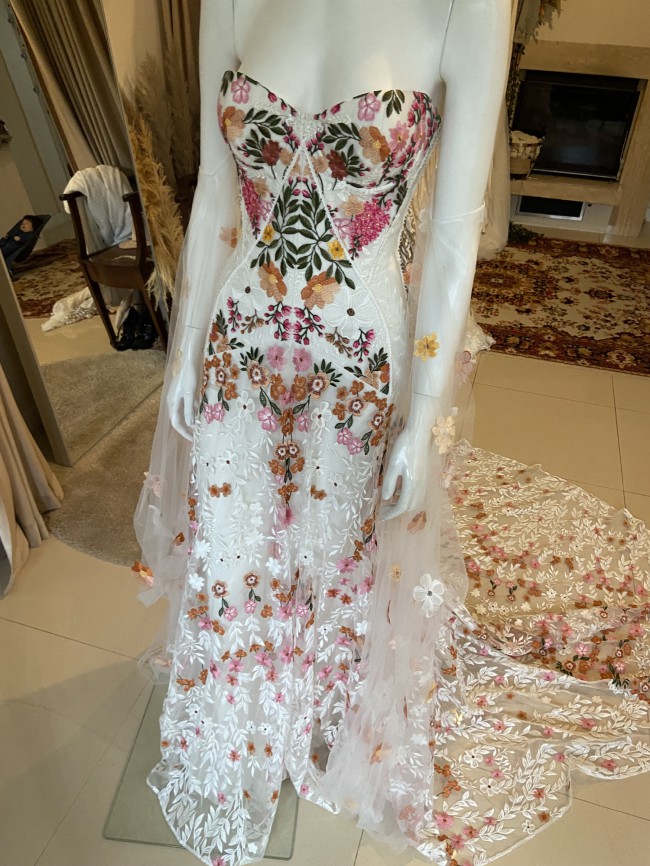 Wear with our Cora Sleeves • Meadow featuring hand appliquéd three-dimensional florals for the ultimate entrance.