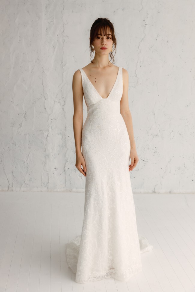Beautifully refined and effortlessly chic, Atlas is made for the elegant minimalist who is looking for subtle sparkle. Features a wide plunge V-neckline, fitted waist panel, and a body-loving, easy to wear silhouette in intricate abstract embroidery.