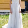 Boho inspired wedding dress worn in July 2022. Flattering and comfortable A-line style with beautiful lace detail on the bodice, soft blush colour. I am 169cm and wore this with flats.