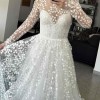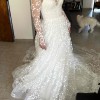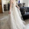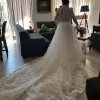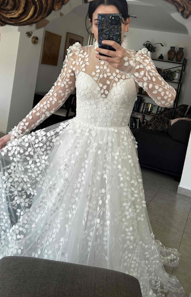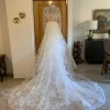 This is a costume made Lana Marinenko original dress, is STUNNING. Inspired by Carolina Herrera and Monique L. dresses. It is a very beautiful, dramatic and feminine dress. So perfectly crafted! I’m not going to be able to wear it because my wedding is going to be more of an elopement now, and of course this dress is for a proper reception. You will feel so beautiful and comfortable in it. With a 2 meter long tail. I’m happy yo send you more videos! Please any questions I’m here to help!