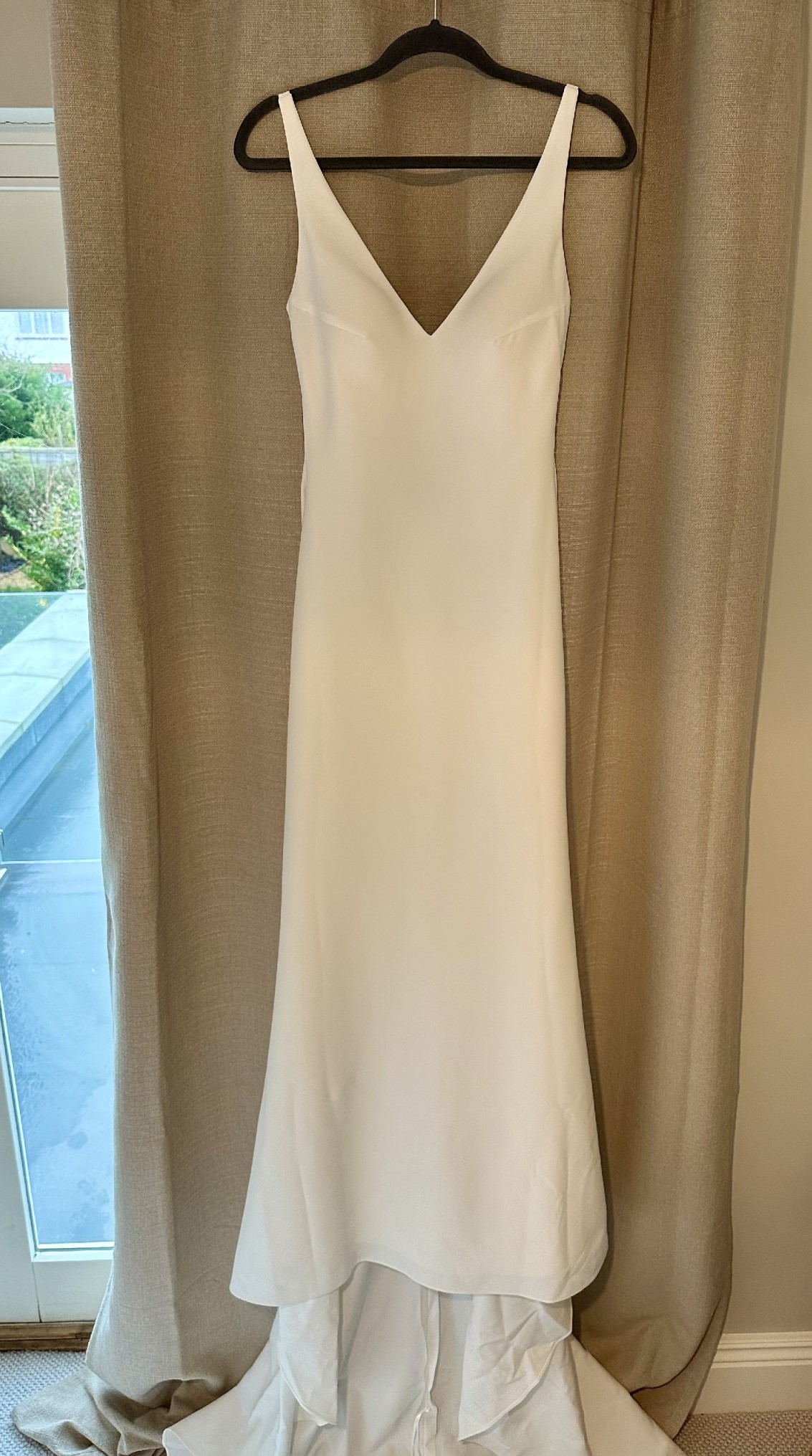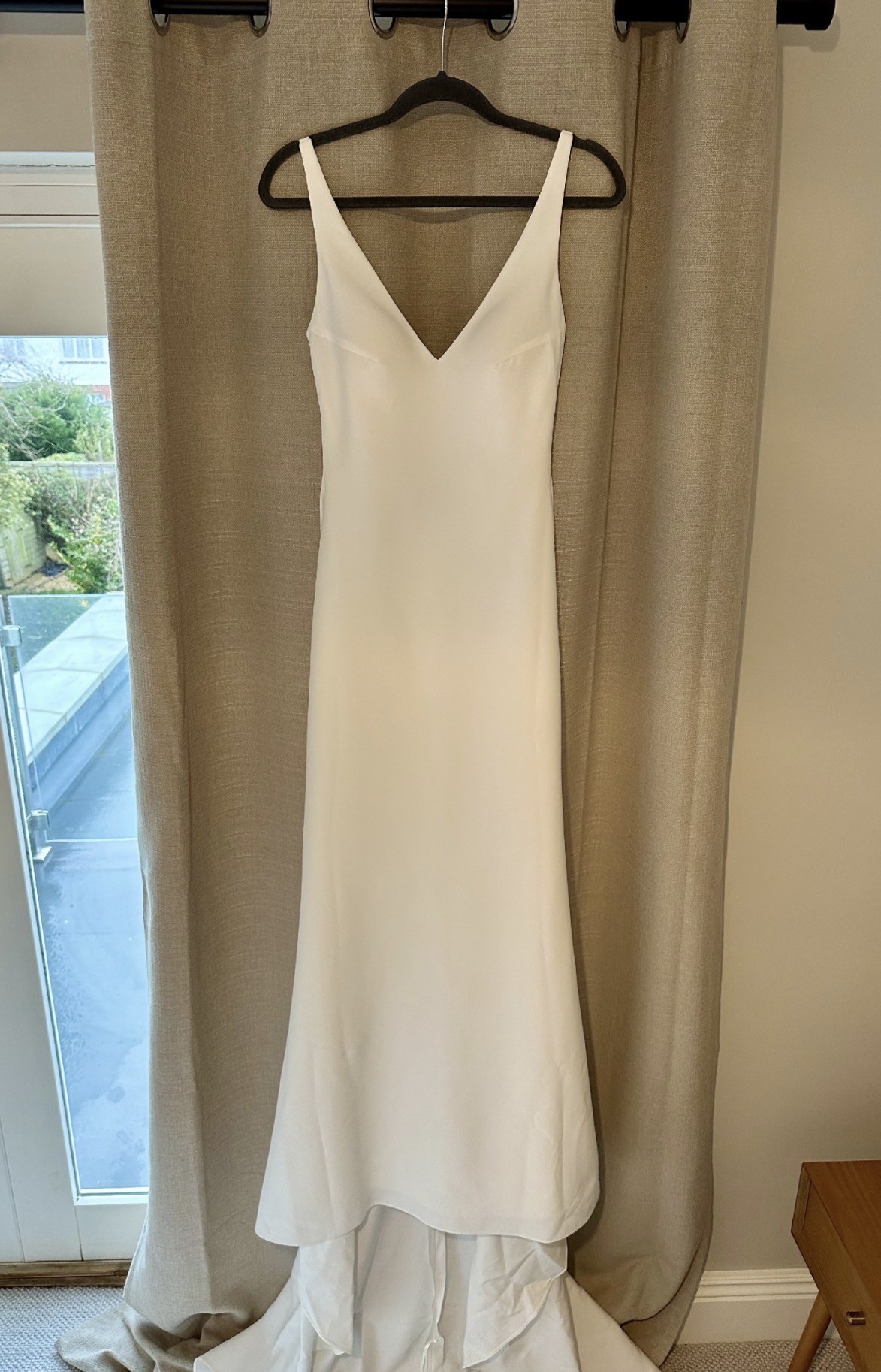 Will need a steam as has creased at bottom. Has been hung by hanging straps so not to mishap the dress.