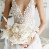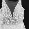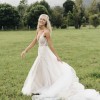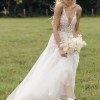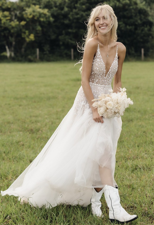 Absolute dream dress from Liz Martinez. Multiple layers of flowing ivory and nude tulle with an intricately beaded and fitted bodice and sexy low back. Hand embroidered with floral beads and crystals. The dress is light, flowy and comfortable to wear all night. The dress was made to measure dress is worn with B-Cup inserts (removable)