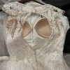 It has ton of sparkling beads, appliqués, and layers of tulles. It has zippered back with button closures and a train. Bought size 2 dress and altered down to fit size 00/ 0 figure. Spent over $1k for alterations: