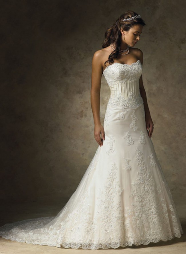 Hem on dress is illusion lace which extends to toe and has not been altered.