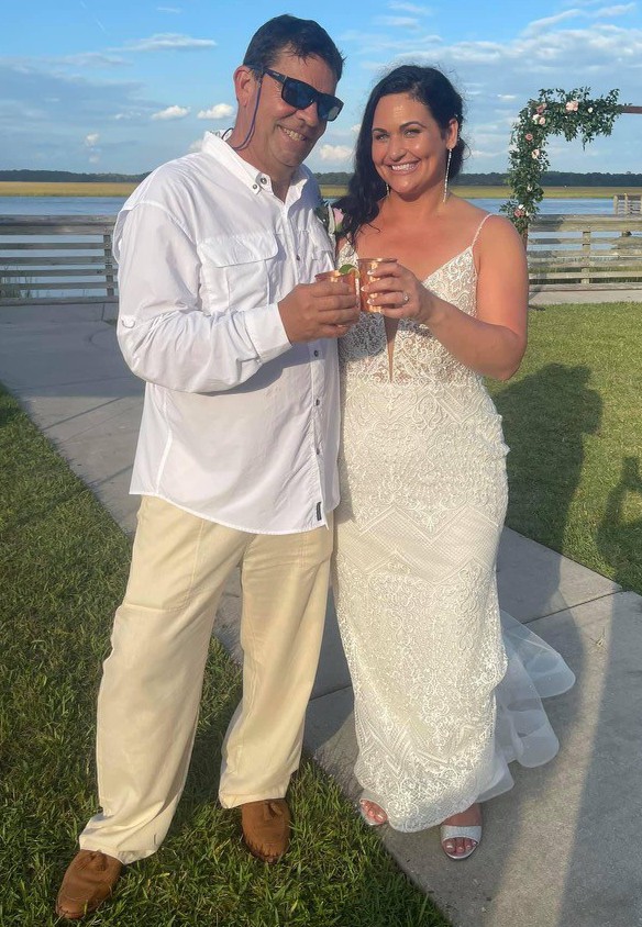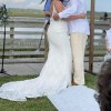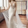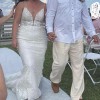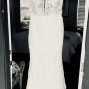 Abella, style E100, bridal size 16, fits sizing Bust- 42.5 Waist-35.5 Hip-46, approximately street size 12, can be altered down 2-3 sizes to be without altering line on the gown. Length fits approximately 5'7 with room for a heel still. Can be hemmed! Neckpiece and cape are seperate.