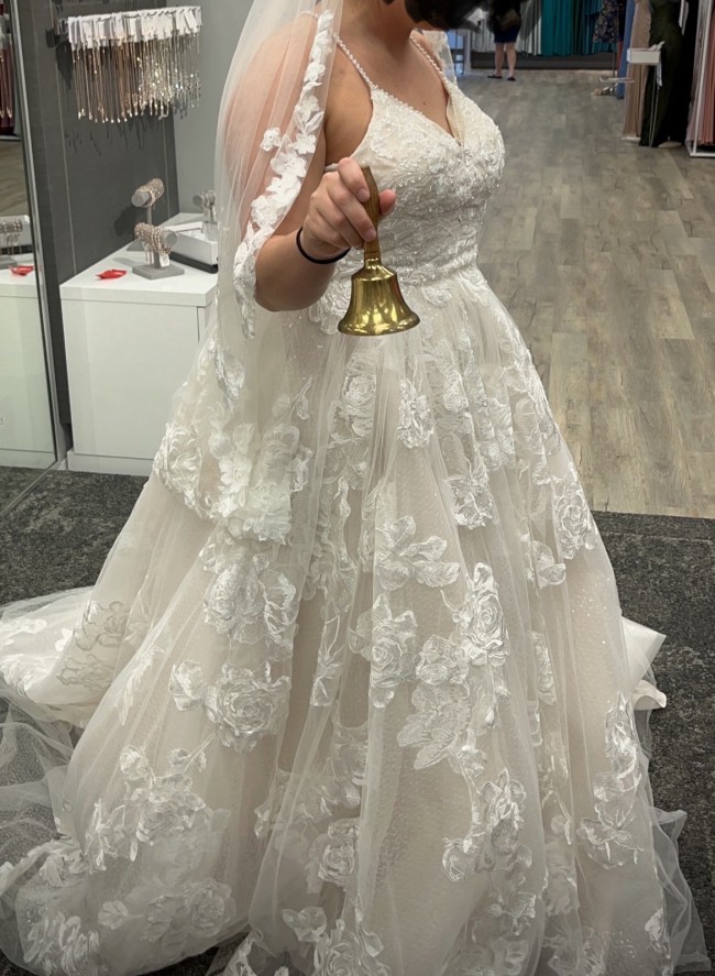 Description is directly from David’s bridal website: (I will include matching veil in pictures)