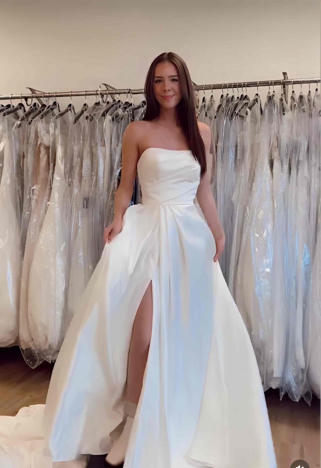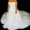 * Free Shipping to US locations…The quality of this dress is fantastic and feels wonderful on the skin while complimenting any shape. This dress gives a classic timeless look yet could be transformed into anything that you want. Wear it with heels or even cowboy boots and I’m sure you’ll still look good. This dress has not left my home and has been in the dress bag in an unused climate controlled room. It will come with the bag and receipt if you’d like. It is off of the rack. The last photo shows the slit tucked to give a visual of a higher slit. I’m happy to post additional photos if requested.