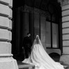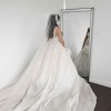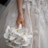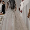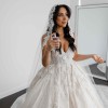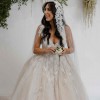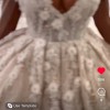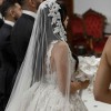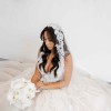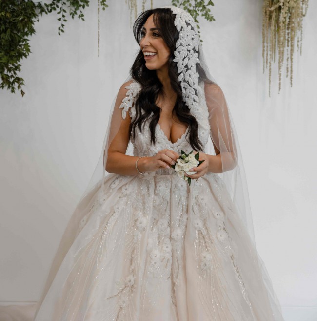 Custom silk gazar gown with hand made flowers, encrusted with opals and crystals.