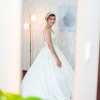I fell in love with all the details: The lush ruffles that give the effect of gracefully sliding when walking, the lace being delicate and intricate, the pearls and crystals which sparkle in the light. The color is pure white, like a dream. I loved how it flows and flattered my figure, and I also loved how much it made me feel elegant and graceful. The fabric which has a soft shimmer gives the outfit a real fabulous gloss which made me feel in a fantasy where I was the most beautiful bride ever.