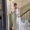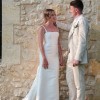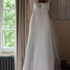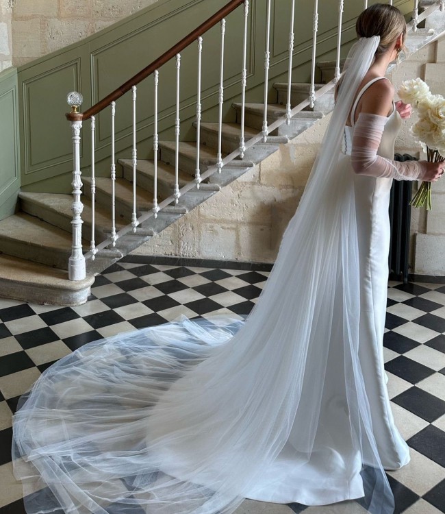Category is modern 60s icon. You win in Arta, thanks to tulle details over a luxe duchess satin structured silhouette. A square neckline, fitted bodice with delicate straps and gentle fit and flare skirt contrasts perfectly to the softness of tulle sleeves and narrow tulle overskirt, both which are detachable.