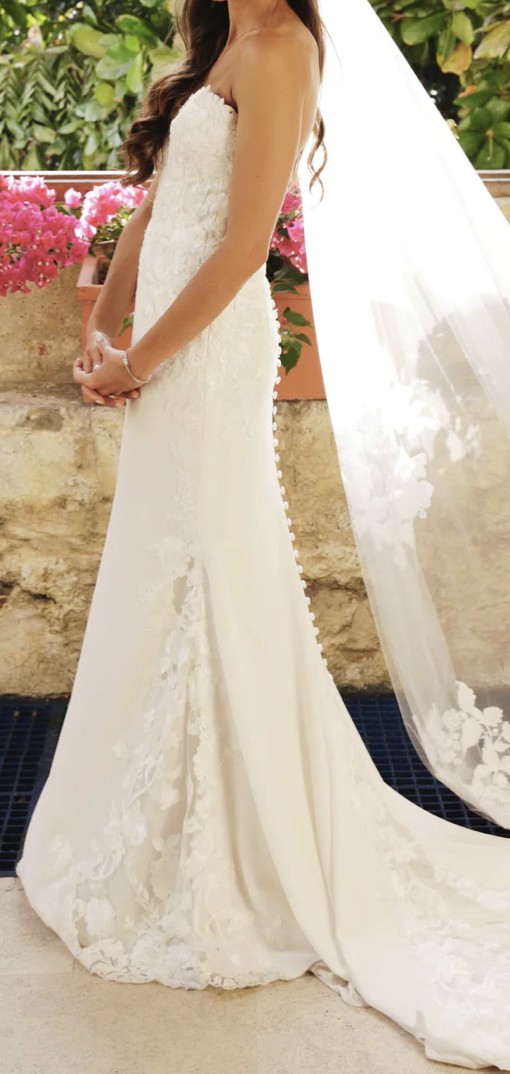 I originally bought it and had it tailored at kleinfeild for my size (I’m usually a 6) but wedding dress was originally ordered in size 12. My measurements are 38 bust