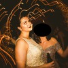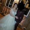 It's truly a beautiful gown; not overwhelmingly sparkly but looks absolutely gorgeous in low lights and shows up amazing in dance floor pictures. I don't feel that it "swallowed" me up and the champagne color is so much more dimensional that ivory or white.