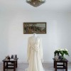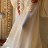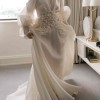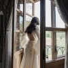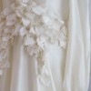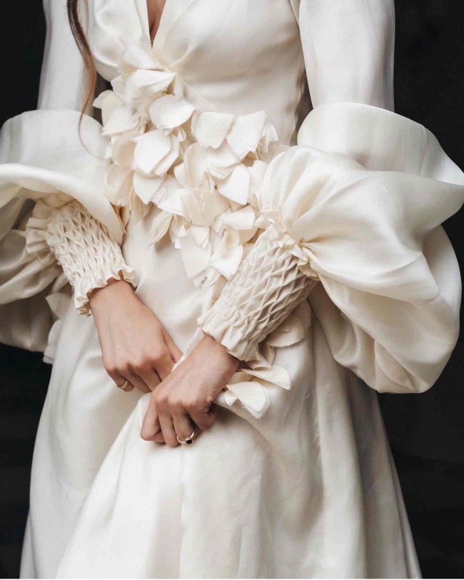 The most delicate and air-filled dress of our collection is made of natural silk organza. Framed by hundreds of handmade 'butterflies' and gathered at the waist. The dress is complemented by hypertrophied voluminous sleeves of our unique cut, and the gathered cuffs give the silhouette elegance and lightness.