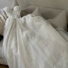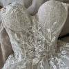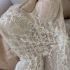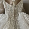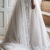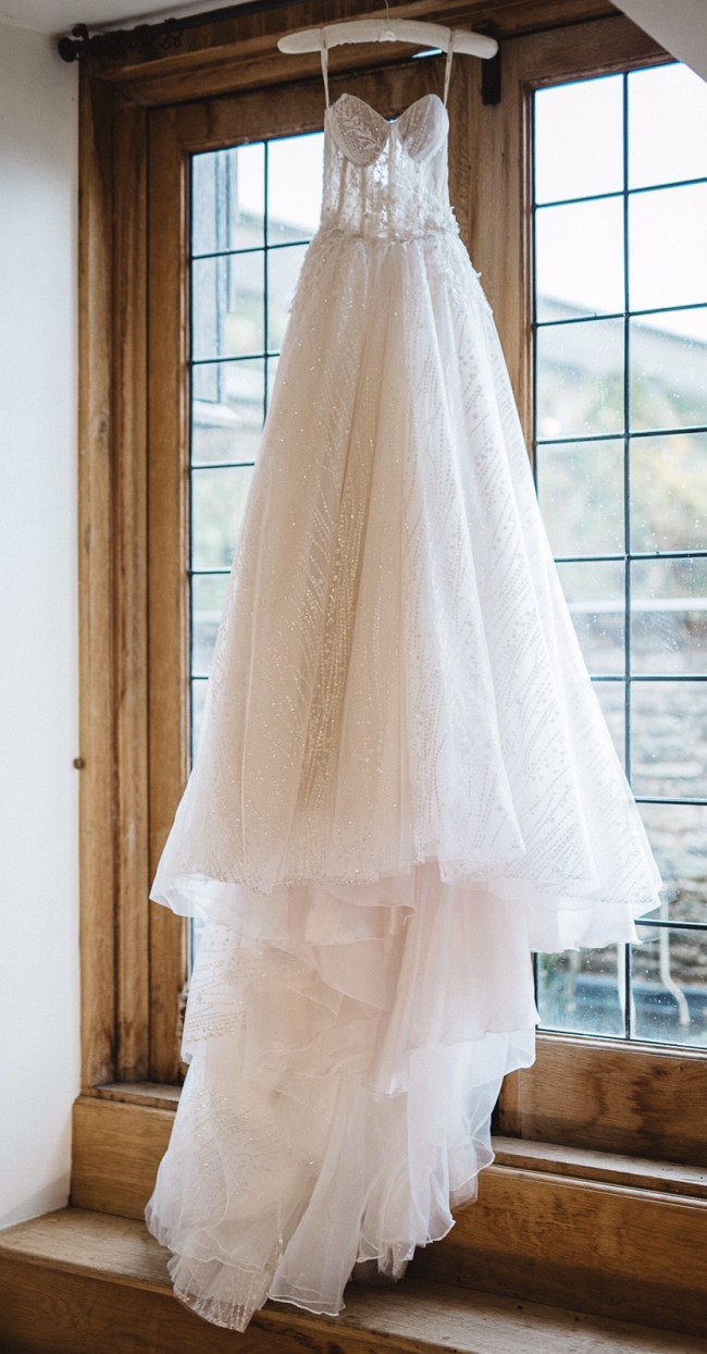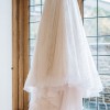 This was the first wedding dress I tried on, and I immediately fell in love with it and it was the one! I felt like a princess allday.. the fabric and dress is chic beautiful and I felt amazing in it. I’m 5ft1 and I wore 3inch heels and the dress was skimming the floor which was a perfect length and the back of the dress that’s a long train so very princessy but chic.