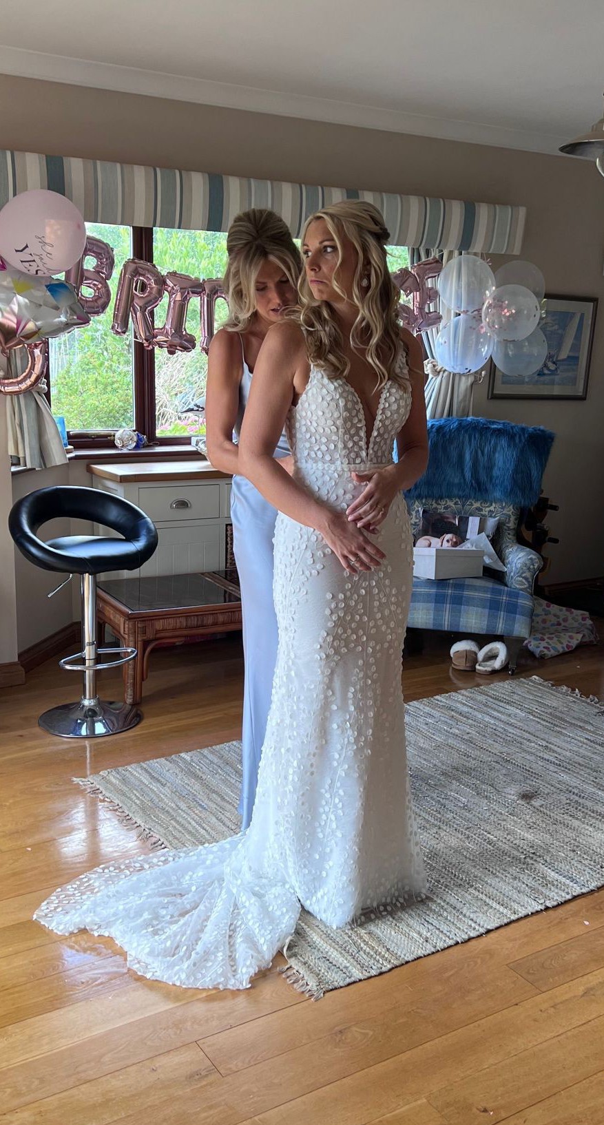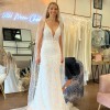 An absolutely stunning dress. Bride tried so many styles but this one made her smile every time she put it on. The dress is split size being a UK 8 on the top. Brides bra size 32DD. Beautiful nipped in waist and fitted over hips. The split size is 8 top, 10 waist and 10 hips. All uk size.