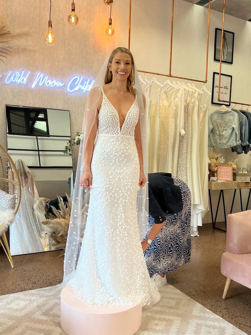 - The straps were taken up about 2.5 centimetres to ensure bride felt secure without bra