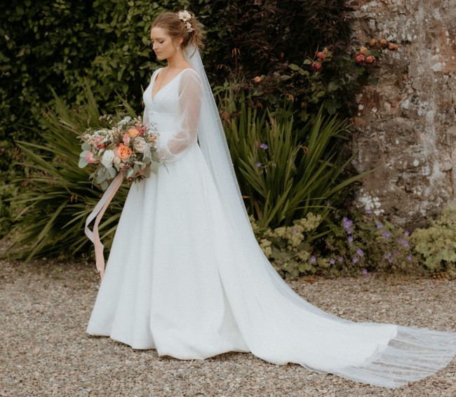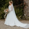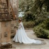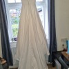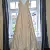Beautiful Justin Alexander dress with custom made detachable sleeves. The dress has buttons all the way down the back and is a soft satin material. It fits UK size 10 in high stores and I'm 5 ft 7 in and wore approx 3 inch heels (153cm height measurement is from shoulder to floor). The sleeves are made from organza and the cuffs are made from the bottom of the dress so matches exactly. Dress has been professionally dry cleaned and there are no noticeable marks on it - I have uploaded photos of it post dry cleaning for reference.