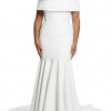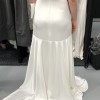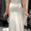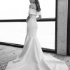 Old Hollywood glamour meets modern minimalism in the Sadie. Sleek and fitted, Sadie is constructed from Chosen. This design includes the v neck front and low v neck back, structured bodice, fit and flare skirt and dramatic train will steal the room. Photos show new off the shoulder design, skirt and train the same.