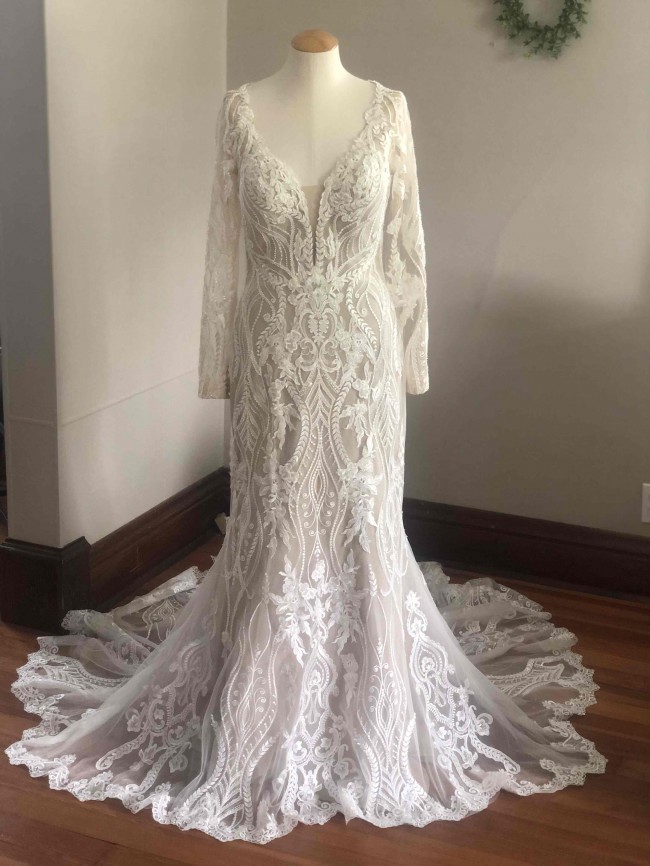 This dress was perfect! I was able to be comfortable as well as dance the whole night into early morning! I had it dry cleaned by professional wedding dress cleaners. It looks like the day I picked it up from the bridal shop. The dress does have some like beading within the lace which adds the perfect touch.