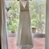 The gown has a Cathedral length train, with a tie bustle and hand loops for ease of wear.