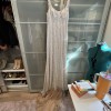 The dress is fitted and extremely comfortable to move around in all day/night long. The pearls and underlayer of sequins make it slightly sparkly.