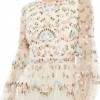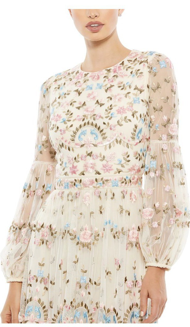 Embroidered High Neck Illusion Sleeve Tiered Tulle Gown
