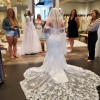 This is a beautiful dress that I want someone else to wear instead of it sitting in my closet for years :). Freshly dry cleaned and pressed. Only worn for alterations and once on my wedding day. I do not have the detachable sleeves pictured in pic 8. For reference, I am 5'3 185 pounds curvy figure. No veil included. It has a 6 point bustle for the train as well. Original garment bag from "our shop bridal" included.