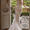 The alluring V-neckline and delicate straps create an enchanting frame for your shoulders, while the striking backless design adds a hint of drama and allure, making it an unforgettable choice for any bride. The floor-length skirt flows gracefully, allowing for movement and ease as you glide down the aisle. Each detail of this exquisite dress has been thoughtfully designed to evoke romance and sophistication.