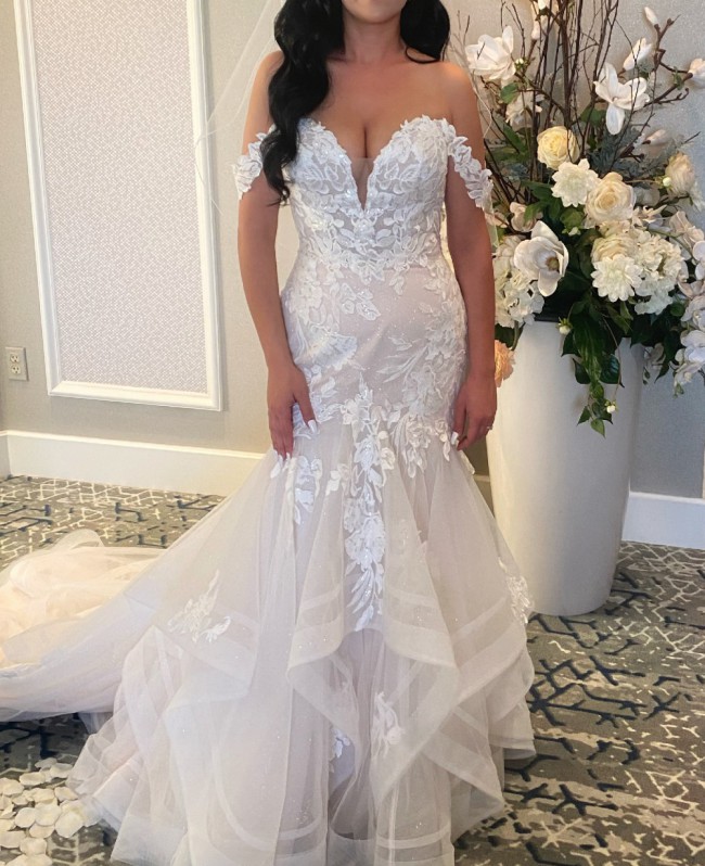 Beautiful fitted dress, very flattering. Worn once for a few hours, simply needs a cleaning. Added pads for lift.