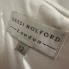 I bought this dress from a bridal boutique and it was sold as seen as a size 12 UK sample. The pictures are from the boutique and are of the actual dress. I fell immediately in love with the unique and flattering custom neckline. The gown is flattering, it's beautifully made and it feels incredible on. No alterations have been made. Since Sassi Holford is a UK designer, the sizes run smaller than the US. The sizes above represent Sassi Holford's measurments.