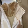 - shortened length, sweetheart neckline added, bustle added, bodice tightened