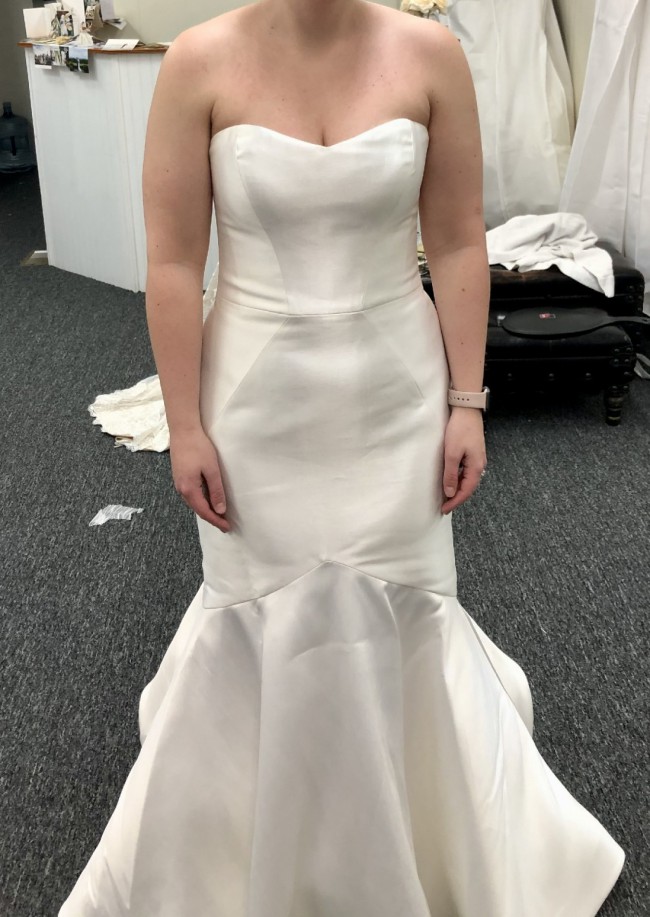 This dress is in amazing condition and has never been worn. While I did have it altered, I never ended up wearing it for my wedding so it is like new. The dress is Pronovias Oberon. It is mermaid and made of Mikado silk. It originally had a straight across neckline but I altered it to be a sweetheart. There is small threading in the back stitched in for the bustle. I would love for another bride to have the opportunity to wear it!