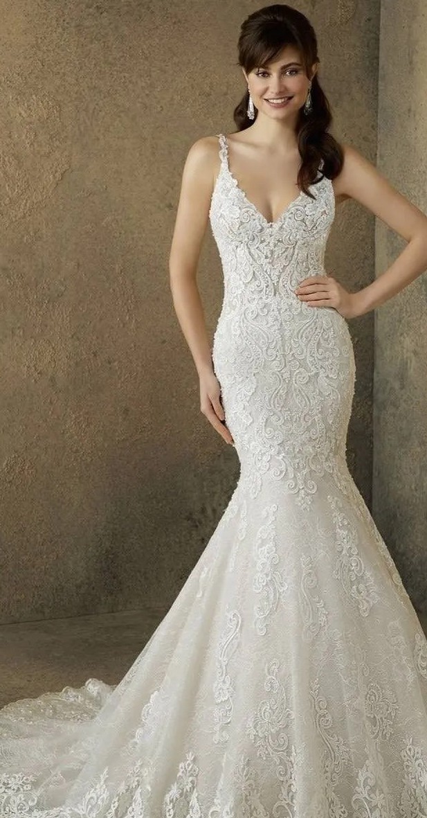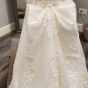 At my wedding I was 5'10 (with 2" heels) and weighed 165 lb. The dress fit a little loose but still looked perfect. I was a street size 8 at the time, 5'8 normal height. Chest size 36C, the dress was padded so no bra was needed. It was comfy to wear and didn't feel tight when sitting. I had it professionally cleaned and it currently doesn't have any stains, no rips, no damage. The tulle under the dress is white and sparkly and makes the dress sparkle a little in the light. The dress is beaded, laced, and sparkling. With alterations I paid near 2k. Alterations didn't make the dress smaller/bigger, just had to cover my chest a tiny bit and my back to make it church appropriate. Dress is Ivory. It has been hanging in my closet protected from dust/light/or anything else that can ruin the dress. Like new condition, I just don't need it anymore and it's taking up much needed space.