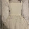 Dress has been professionally dry cleaned but there is a small faded mark on the skirt and around the hem (although I doubt this will be visible when walking and the hem could be taken off with alterations). I have included a photo and video of this.