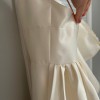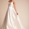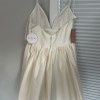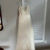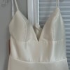 We love this ballgown's 90s-influenced edge—it's chic and elegant without all the frills. Lustrous satin, a plunging v-neck, and spaghetti straps make a decidedly modern statement. The dress is an absolute dream! Fits true to size; take your normal size. Fitted at the bust and waist, loose at the hip. Not bra friendly; additional bust support can be added by an expert bridal tailor Back zip with hook-and-eye closure. Beautiful ivory color